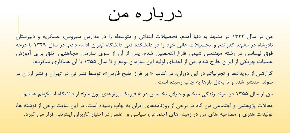 استفاده از مندرجات اين سايت براي آگاهي بخشي رايگان، با ذکر منبع مجاز است.--- اين سايت مسئول محتواي بخش "دانستنيهاي گوناگون" نيست